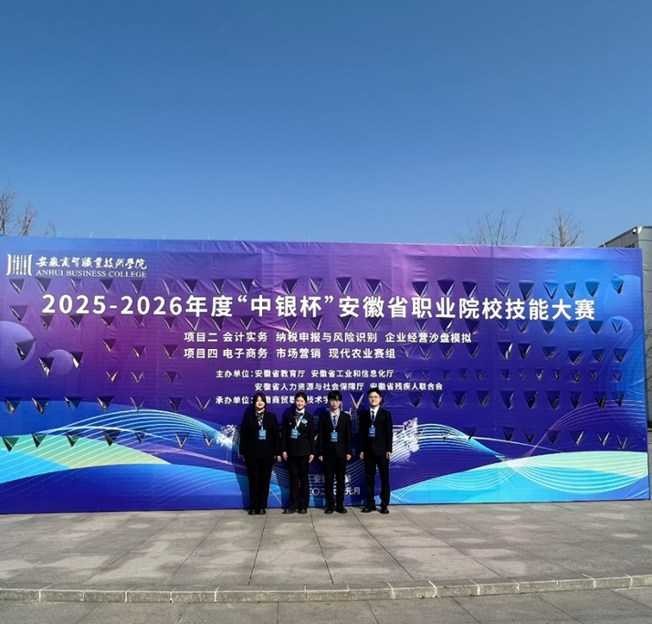 2026年1月22日至24日,安徽省职业院校技能大赛高职组“市场营销”赛项落幕。我院市场营销专业代表队全身心投入此次高水平技能竞技平台,在与全省多所高校队伍的同台交流与切磋中,充分展现了扎实的学习积累、出色的团队协作与不畏挑战、追求进步的拼搏风貌。